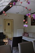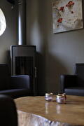 Een gezellige zitkamer met sfeerhaard, TV en een stereo-installatie. Een keukentje voorzien van servies, koffie- en theezetapparatuur, magnetron, koelkast, elektrische kookplaat en afwasmachine, zodat boeken op basis van zelfverzorging ook mogelijk is.